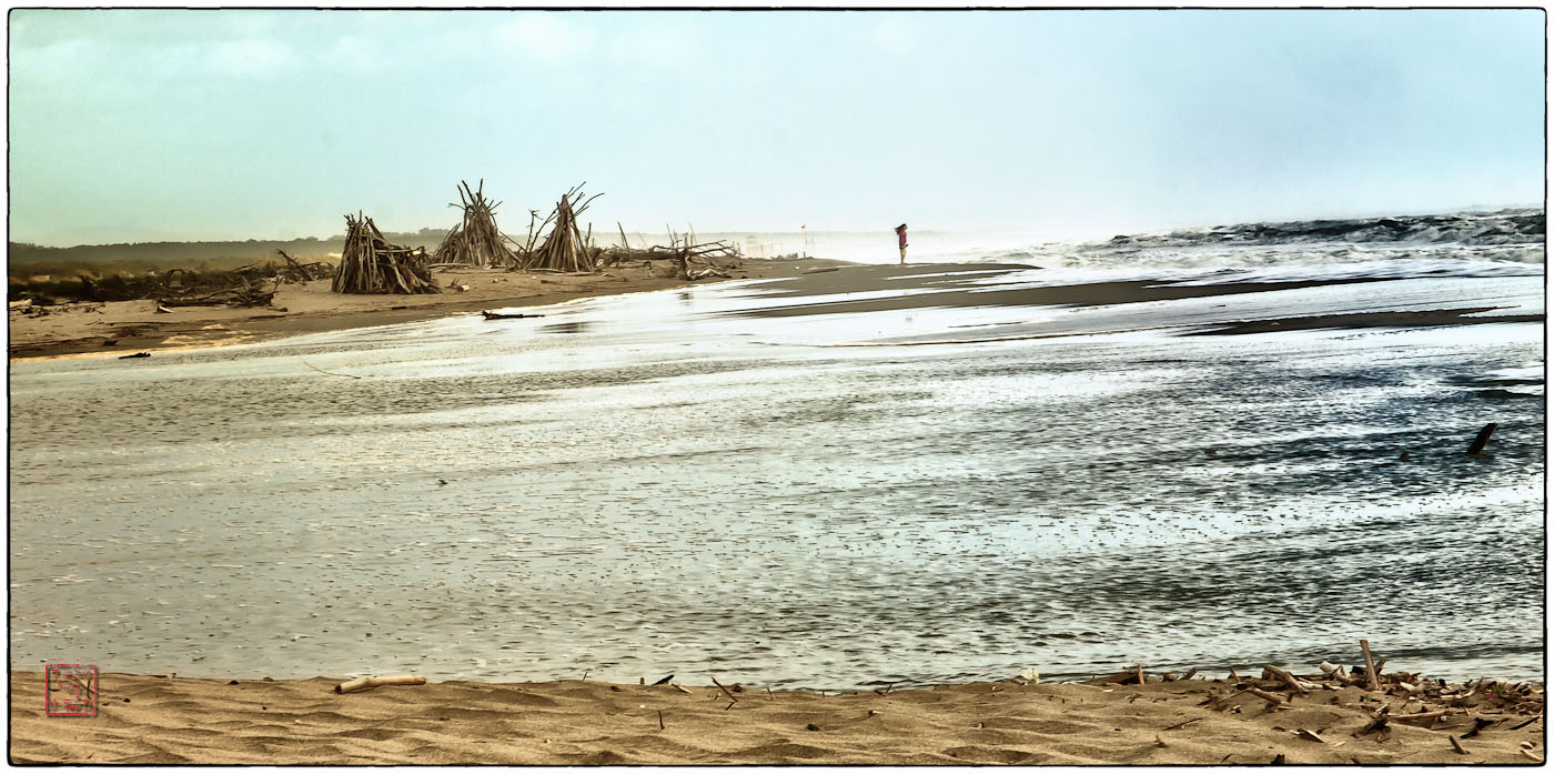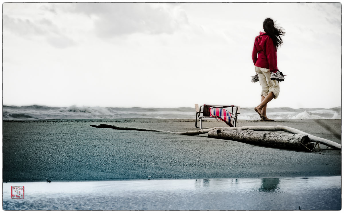 Tja, und die beiden Fotos? Eine einsam genießende Seele am Strand, im Wind, im Wetter.