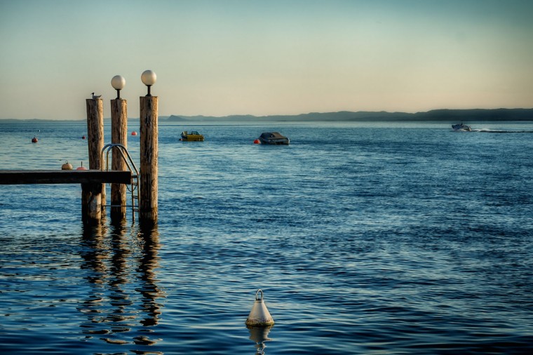 „Licht ist alles“ – das Äußere bei untergehender Sonne oder das Innere bei einem Retsina in Griechenland beim Mittagsmahl mit Kalamares und Tsatsiki, auch wenn die Sonne senkrecht vom Himmel brennt. Das tut sie am Gardasee eigentlich nie und im Juni kann ein Urlaub auch einer Frischzellenkur gleichen. Aber wenn das Seewasser appetitlich dümmpelt, die meisten Boote schon wieder friedlich in den Schlaf wippen und am Horizont eigentlich nichts anderes ist als hier – dann ist es der letzte Halt vorm Horizont da drüben …