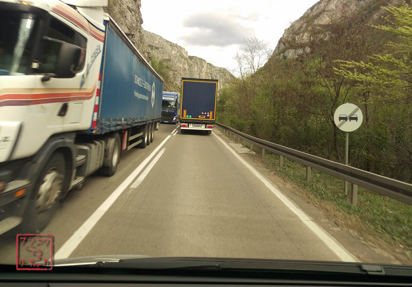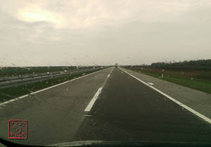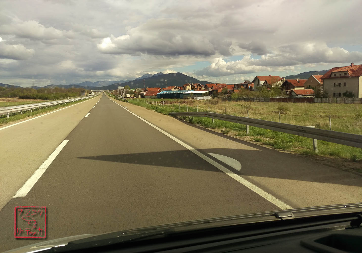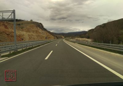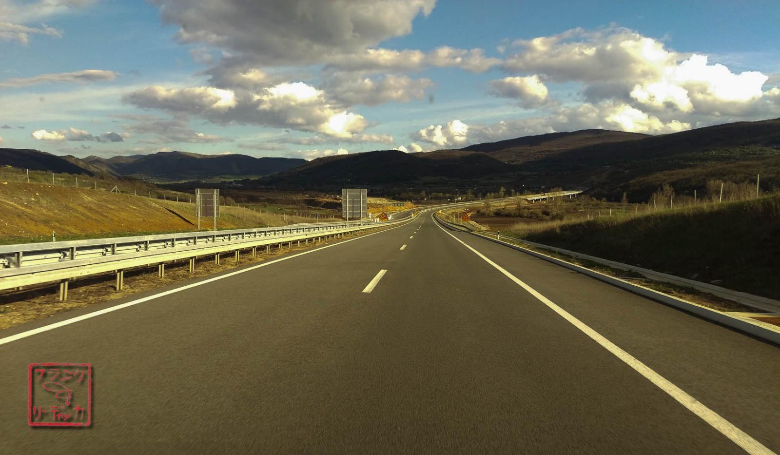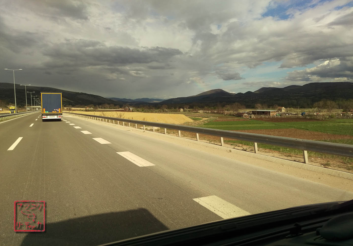Und die Fahrt führt mich kurz vor Sonnenuntergang durch den Süden Bulgariens. Oh, upps, ich bin aufgewacht, nee, war voll konzentriert! Doch irgendetwas habe ich nicht mitbekommen! Nach ein paar Hügeln, ein paar Wolken, wenigen Mitfahrern in ihren LKW’s, eine Kurve weiter und weiter – – bin ich plötzlich ALLEIN!