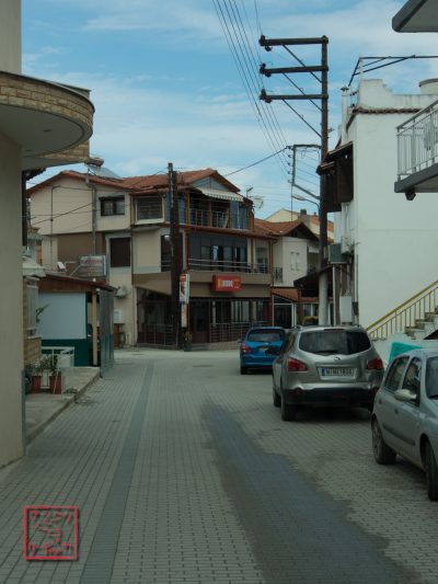 Wenig später in Sykia: Vor 40 Jahren wohnte dort der (Camping-)Friseur meiner Eltern. Sie haben ihm in den 80’er Jahren z.B. eine Compakt-Musik-Anlage aus Deutschland mitgebracht. Dafür bekamen sie dann den Schafskäse in 5 Liter Kannister, zum Beispiel (ja, zum Beispiel, denn es gab noch keinen Internethandel, Griechenland war vom überschwenglichen Konsum etwas abgeschnitten, und so wurde auch das Auto bei der Einreise in den Reisepass eingetragen, damit es nicht im Land verkauft werden konnte, oder Deutsche finanzierten sich die Rückreise, indem sie ein Wunschzelt in Deutschland kauften – Steilwandzelte ! – und am Ende des Urlaubs an einen Griechen verkauften.)