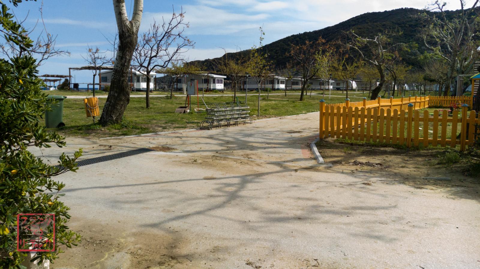 Mit schlimmer Vorahnung habe ich von dort oben dann die Urlaubscontainer in der Bucht von Thalatta Camping – ehemals Kalamitsi Camping – gesehen. Das erste Foto zeigt den „Supermarkt“ – jahrzehnte die Einkaufsalternative zum Shop auf dem Campingplatz. Das Foto zeigt deutlich die Veränderungen in der gesamten Bucht des Campingplatzes.