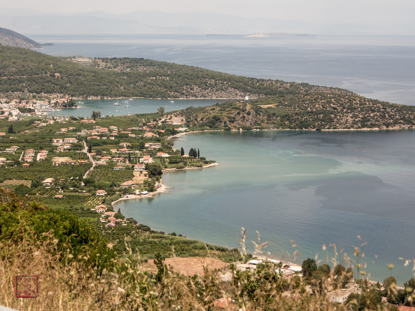 Ich lasse Portoheli rechts liegen, fahre an Hydra vorbei bis nach Galatas, dem Hafen vor Poros. Auf der weiteren Fahrt nach Methana bemerke ich die elektrischen Glockenschläger, die einen höllischen Lärm verursachen, während man von der Terasse der Kapelle in die Bucht schaut.