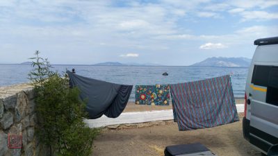 Ein wenig muß ich noch „Strecke machen“ bevor Christine mit dem Flieger landet und sich hier in Griechenland erholen will – nicht Autofahren… Einen Reisetag zum Camping Bekas an Poros vorbei.