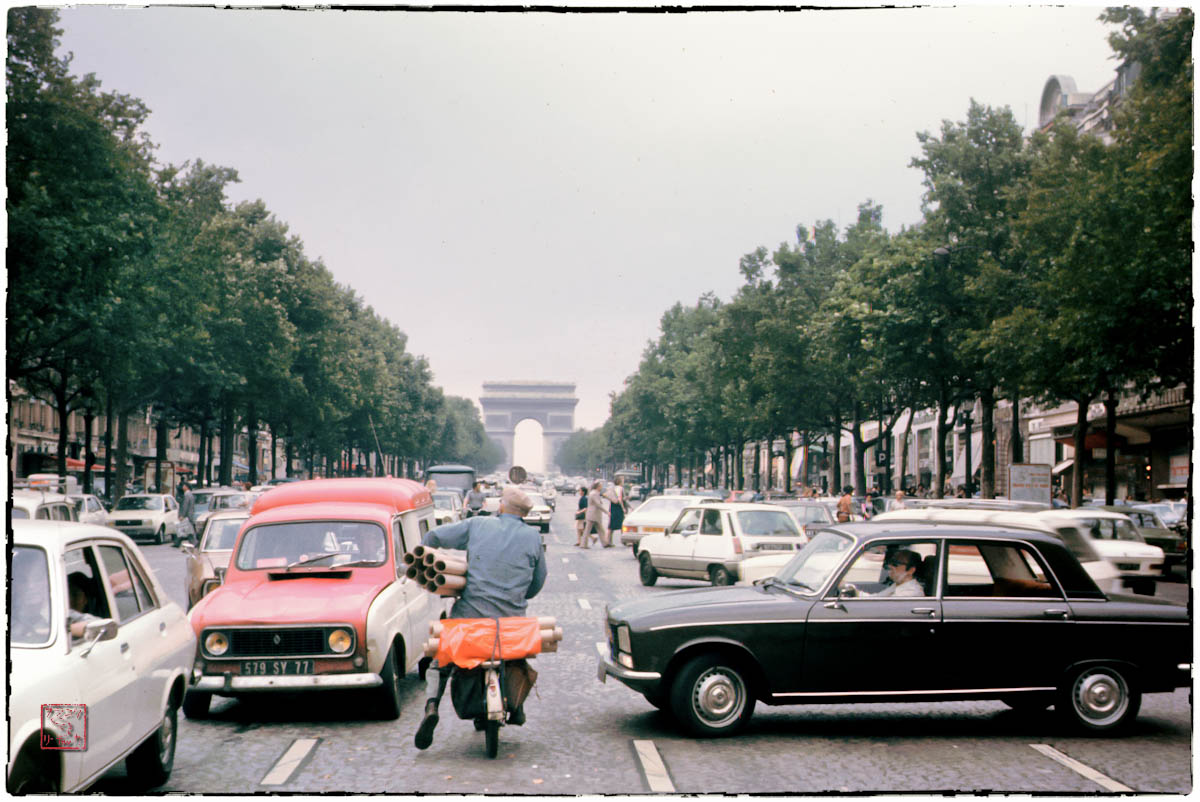 … unter den Brücken an der Seine und auf Bahnhöfen geschlafen und am Tag den dicken Europe Train Guide durchgeblättert, um mit Inter Rail den nächsten Ort morgens! zu erreichen. Aus dieser Zeit geblieben ist auch nur ein Foto, wie man es sich immer vorgestellt hat im französischen Autoverkehr, als in Deutschland beim wöchentlichen Autowaschen das Vorurteil erzählt wurde, es gäbe kein französiches Auto ohne eine Beule.
