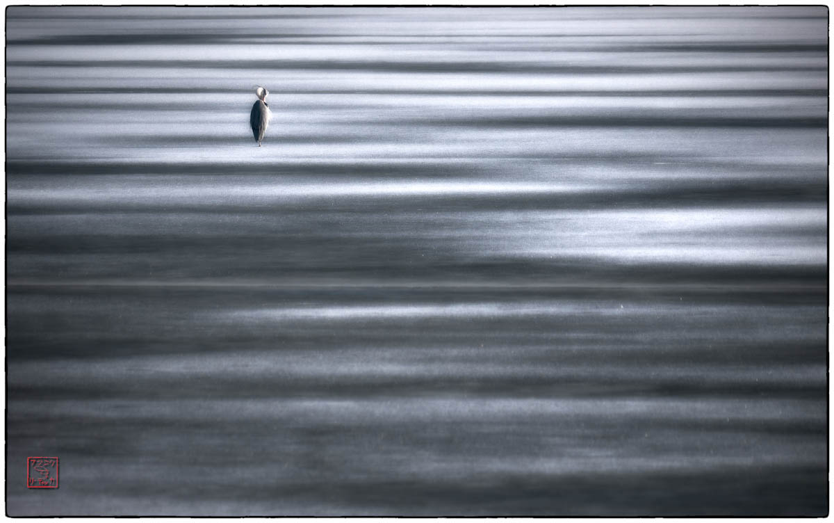 Der Fischreiher genießt das helle Licht: Ignorant, ungesellig und – ja und – denkt? Denkt er vielleicht? Man könnte ja projizieren und vermuten, er wäre am Anfang des Winters noch nicht allein gewesen. Ich kenne mich bei Fischreihern nicht genau aus mit dem Paarverhalten oder der Paarbindung.